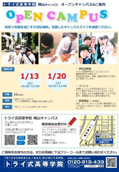 #通信制高校 #通信制高校サポート校 #個別指導 #トライ式高等学院岡山キャンパス #駅近 #アットホーム #中学校 #中等部 #フリースクール #学校 #中等部 #中学校 #不登校 #高校 #高校生 #進路 #卒業 #学習 #勉強 #受験 #受験対策 #個別指導 #合格 #合格体験記 #オンライン #進学 #大学 #イベント多数#津山よりの登校多数