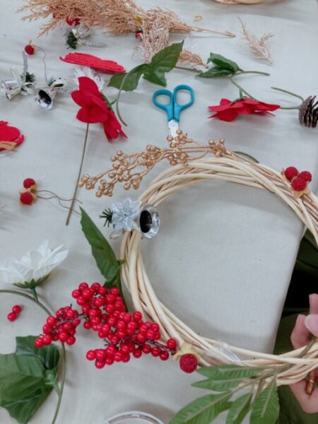 無地のリースに好みの材料をえらんで、