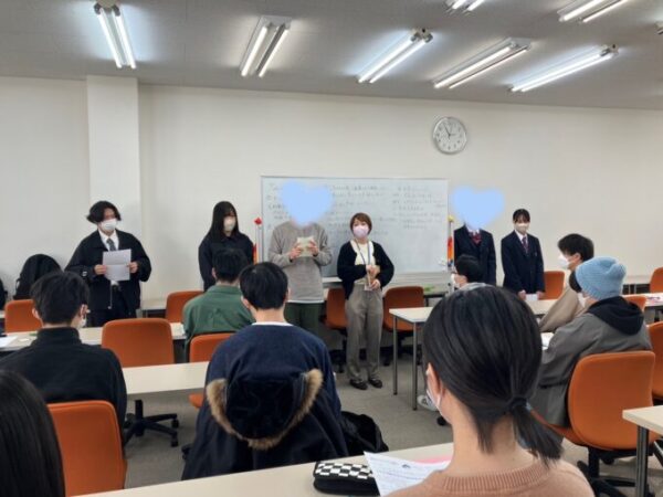 (HR中は自習室に居る塾部の生徒さんにお願いして教室に移動してもらっています)