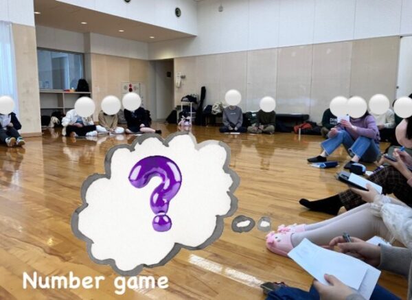 2列でジェスチヤーゲーム、輪になって数字ゲームにイントロクイズ。グループで謎解きゲームとバラエティに富んだゲームを皆で楽しむことができました。