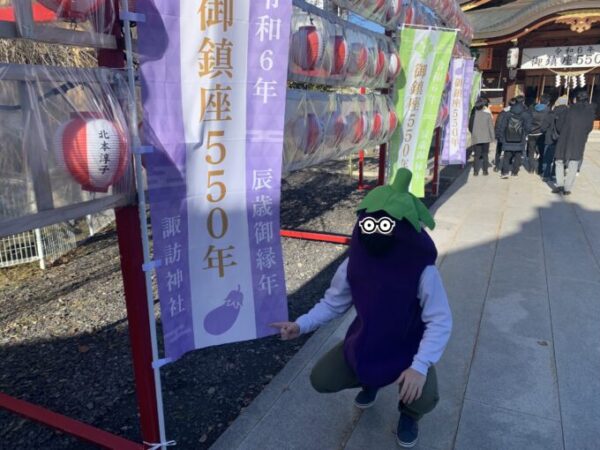 それを知ってか知らずか茄子の着ぐるみを着て初詣に行ったS君
