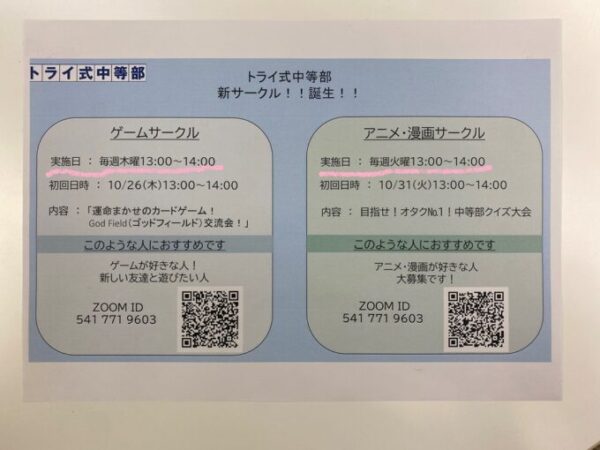 高等学院の中等部では、中学生の皆さんが楽しめるサークルをご用意しています🎈