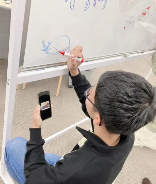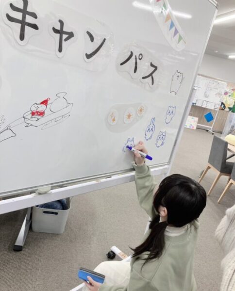 お手伝いの生徒たちが、ホワイトボードに落書き・・・装飾をして