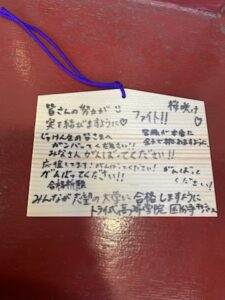 その後は受験生の皆へ絵馬にメッセージを書き合格祈願をしました!