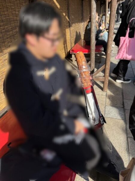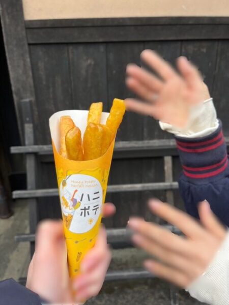 最後の集合時間にはみんな約束の場所に再集合し、それぞれの買ったものを見せ合っていました!長い麩菓子を買っていた生徒は食べ切ろうと一生懸命でした🍪笑