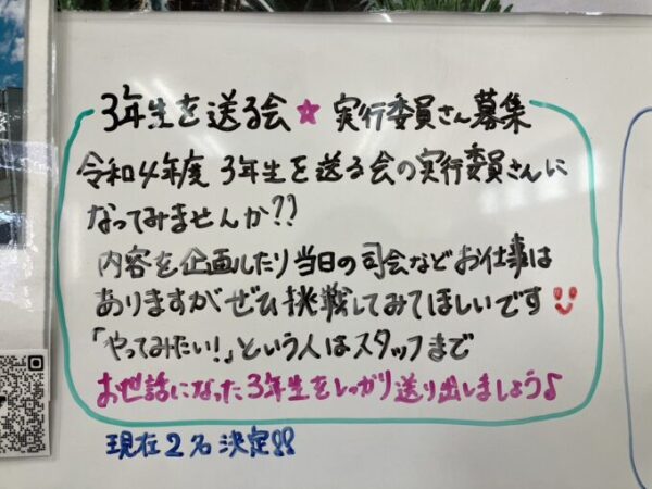 まだまだ募集はしていますので(実行委員さんやってみたい!)という生徒さんは