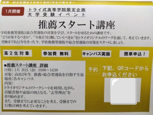 高校2年生を対象にした、推薦スタート講座が1月26日に開催されます🤓
