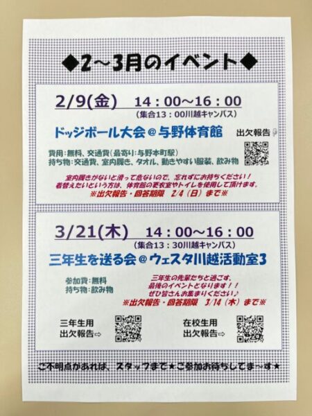 ★出欠報告フォーム回答期限⇨ 2/4(日)まで