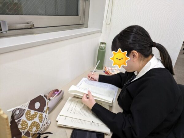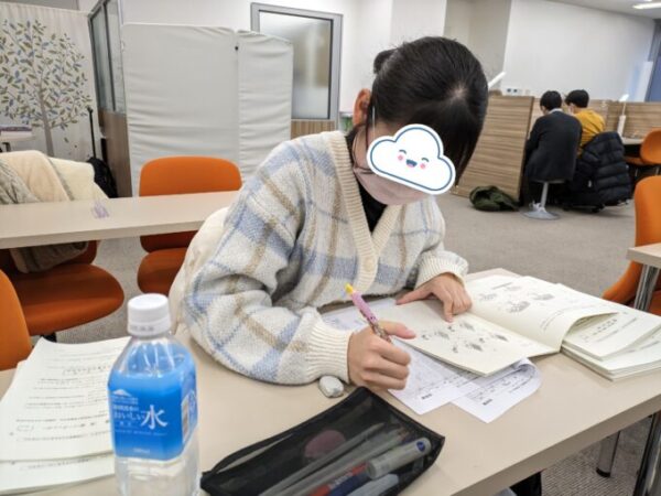 受験した生徒さんたちが自己採点する姿がありました👀