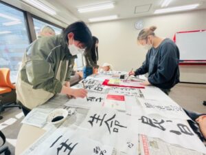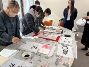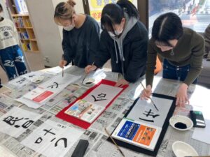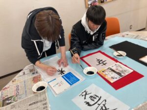 午前中に住吉大社へ初詣に行き、その後キャンパスでみんなで書初めをしました🖌️