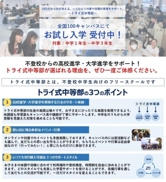 トライ式高等学院ではトライ式中等部を体験していただける【お試し入学】をご用意しております。