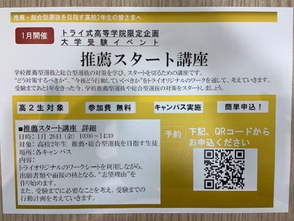 次回は、1/26(金)に開催されます、推薦スタート講座について、お伝えいたします📄