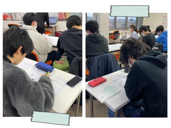 エントリーシートであったり、面接でお話しする内容に通ずるものです。これらは何度も何度もブラッシュアップしていく必要がありますが、まず自分と向き合って考え書き出してみるという活動を通して、参加生徒さんたちは受験への準備を”確実に”一歩前に進めました!