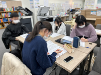 ワークシートを書き進めるのに苦戦している生徒も多かったようですが、サポート役として参加してくれた卒業生の先輩たちが寄り添ってフォローしてくれて、少しずつワークシートを埋めていくことができました☺️