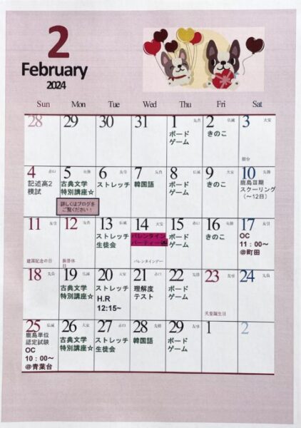 2月カレンダーが完成しました!!!