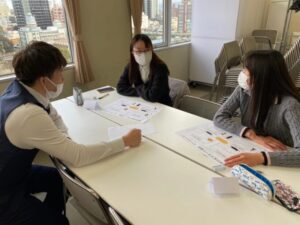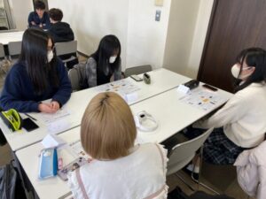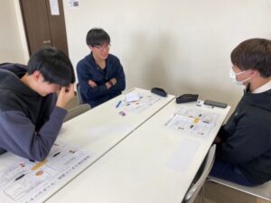 大学進学を目指している生徒が参加し、ワークシートやグループワークの中で、