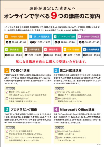 進学先が確定したという方に向けて、今回は「進学準備講座」をご紹介!!