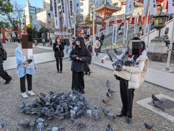 鳩のエサが売ってて、買った瞬間バタバタと集まってきました🕊🕊🕊