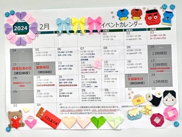 1月最後の様子から。毎月最終週は、みんなでキャンパスに掲示する翌月のイベントカレンダー『デカレンダー』を作成しています🎵2月のビッグイベントといえば、節分👹&バレンタイン🍫いつも通り折り紙でモチーフを作っていきます😉