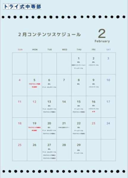 さて、トライ式中等部2月のコンテンツスケジュールをご案内します📝