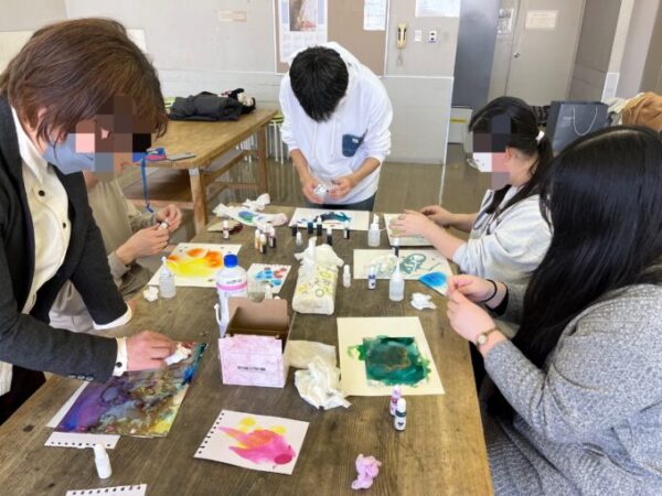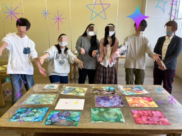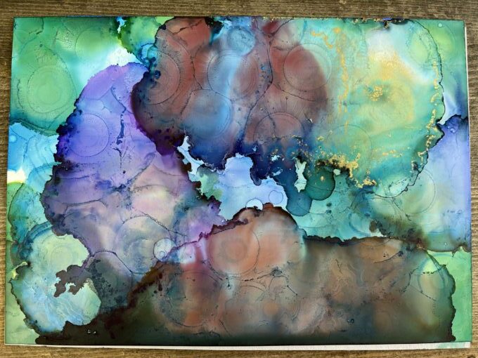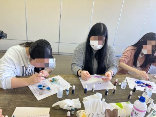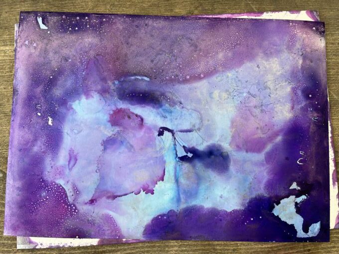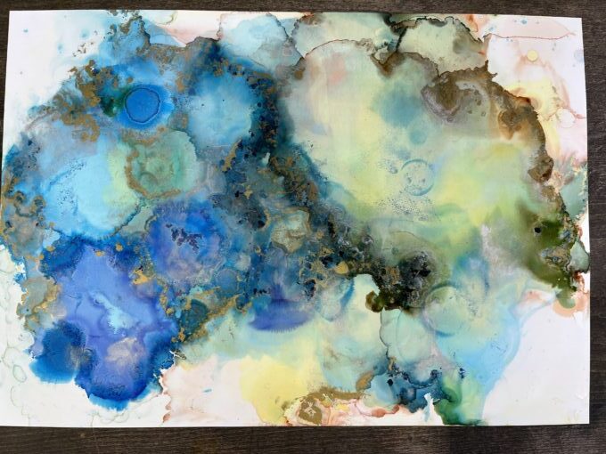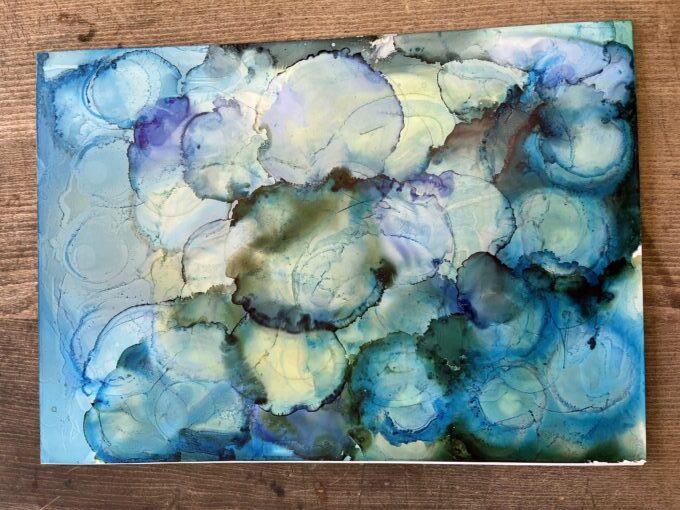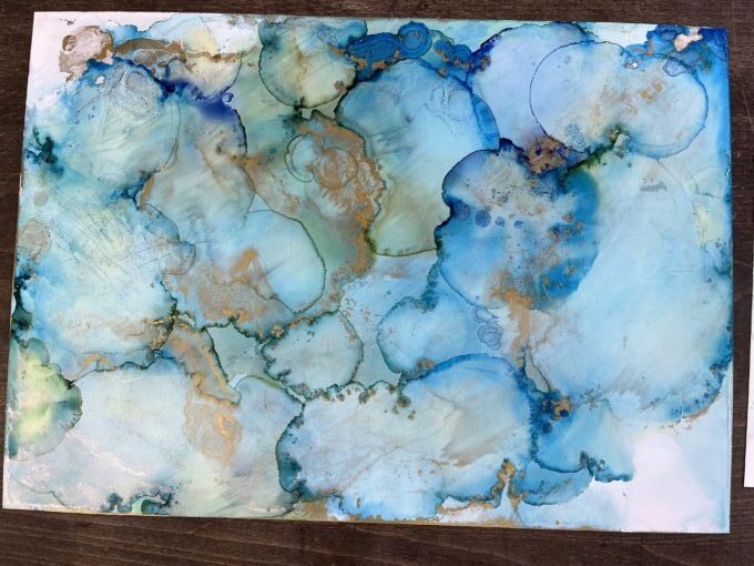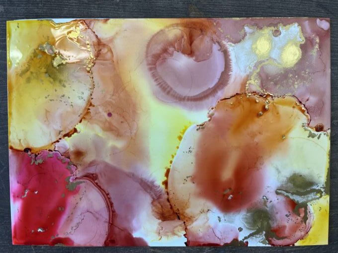 ユポ紙にインクを垂らし、アルコールで広げていきます!