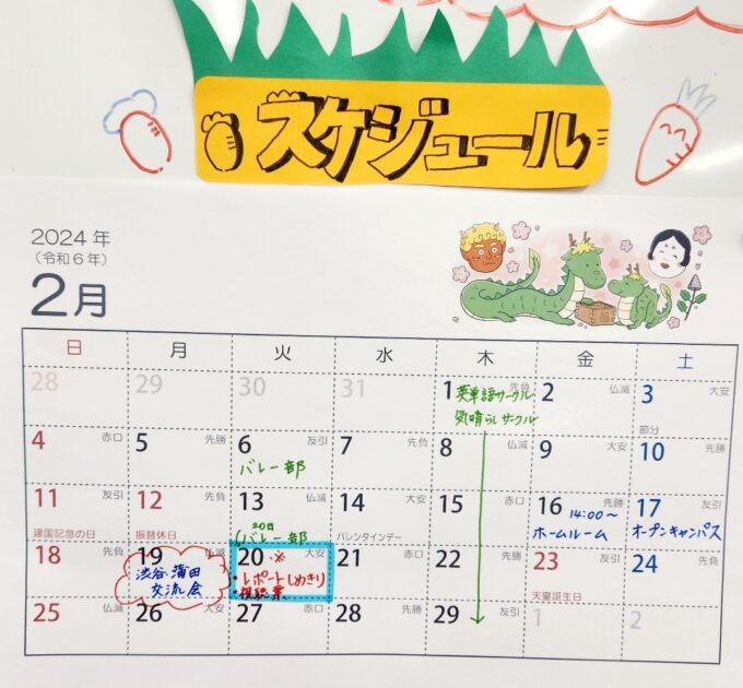 2月は英単語サークル、気晴らしサークル、ホームルーム、オープンキャンパス、渋谷キャンパスとの交流会があります♪渋谷キャンパスのみんなとゲームやボッチャをするのが楽しみです🥰