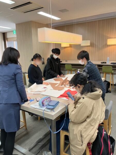 キャンパス長の藤本さんの指揮のもと、みんなでチョキチョキ✂
