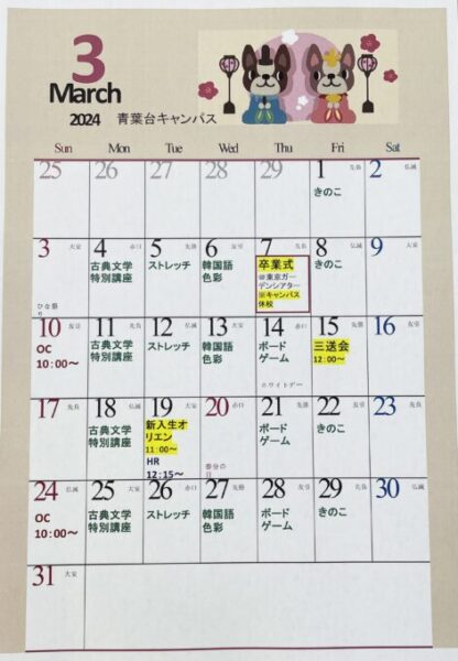 3月カレンダー完成しました!