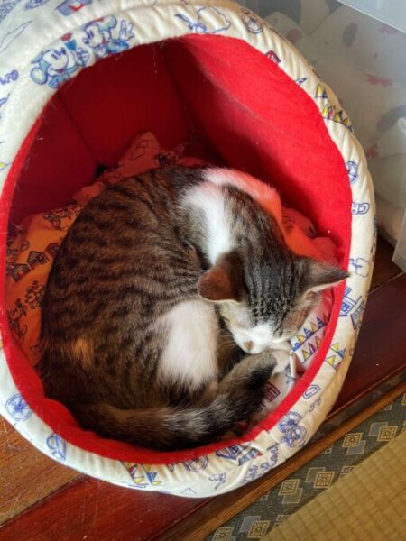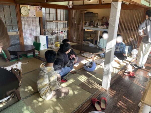 いつも活発な生徒たちも、小声でお話しし(猫ちゃんはお昼寝タイムでした)