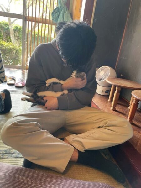 猫を飼っているSくん、さすがに扱いに慣れていますね!!私は猫に嫌がられるのがこわすぎて、積極的に触りにいけませんでした😓😓