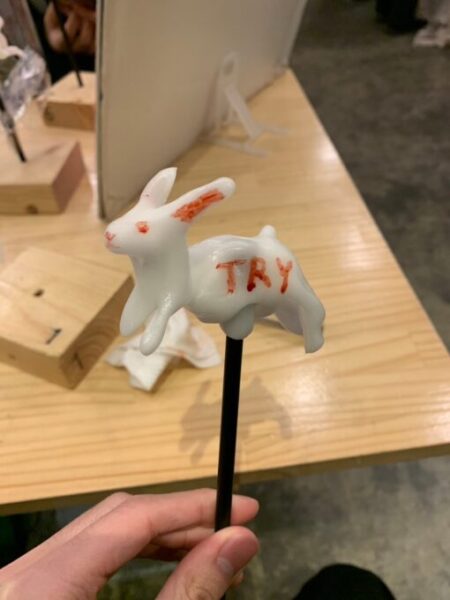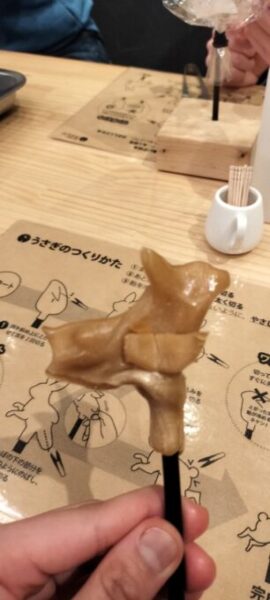 しかし、ちゃんと練習タイムがあるそうで、何回か茶色い飴でウサギさんを作ってから本番は白い飴でチャレンジ!