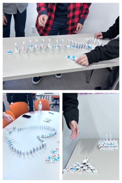 🏆1回戦!!制限時間3分で60個並べて、倒れる個数を競いました!3チームとも、成功🎖️