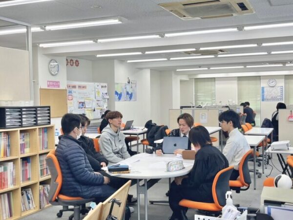 講師が中心に座り、ディスカッション方式の授業を行う中で、