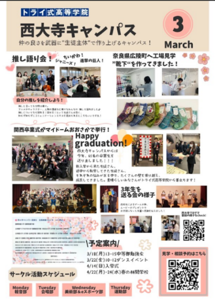 西大寺キャンパスのキャンパス通信3月号が出来上がりました!!