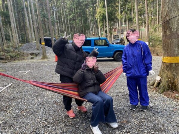 他にハンモックの取り付けなどの研修をして、自然の中でのんびりとしたひと時を過ごしました。