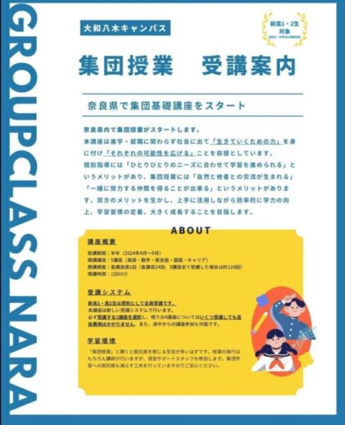 今回は、奈良エリア▶️IN八木キャンパスの集団授業のご案内🖊️です
