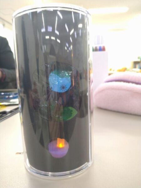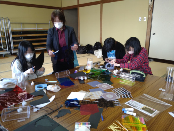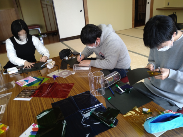 3月の芸術の会は「ステンドグラス風ライトシェード」を作りました。