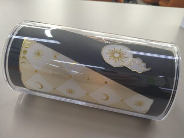 それをコレクションケースに貼り、ライトを入れて透け感を楽しむものです。