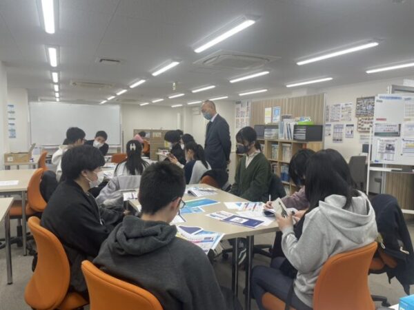 チームで、自分たちの所属するキャンパスや地域に関する取り組みについて調査し、資料にまとめて発表します。仲間と協力して課題を解決する力をつけることができます。