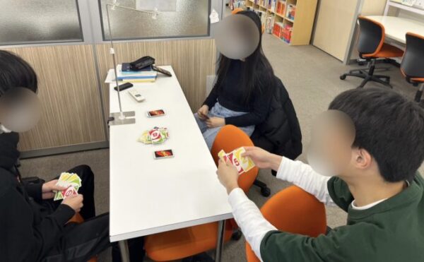 本日、まもなくピカピカの高校1年生になるSくんが授業を受け終えた後、まもなく卒業するKくんがUNOに誘ってくれました👏
