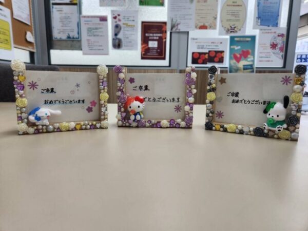 プレゼントは卒業生一人一人のイメージや好みに合わせて手作りのフオトフレームを贈りました!!