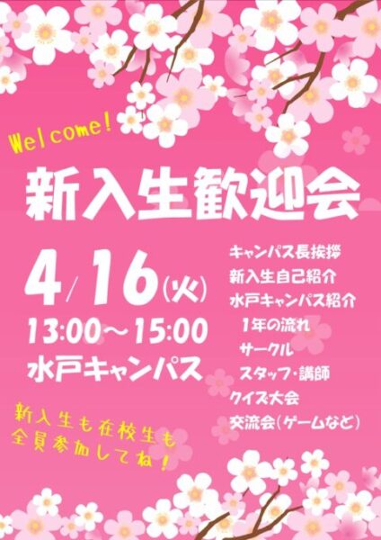 🌸4/16(火)新入生歓迎会を開催します!🌸