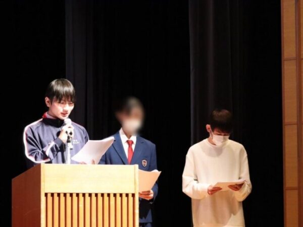 もの静かな生徒さんが壇上に立ち、