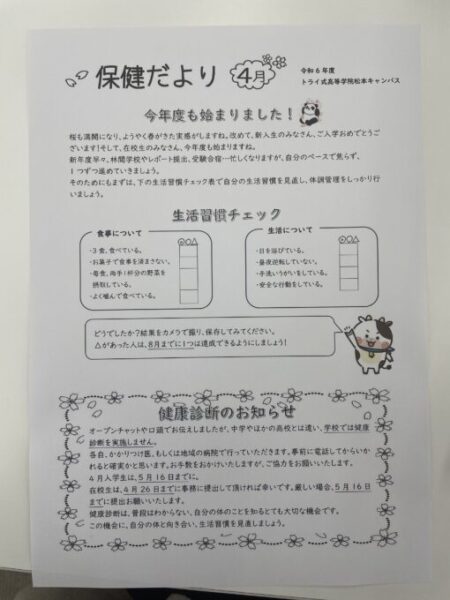 今年度から、保健だよりを作成させていただくことになりました。