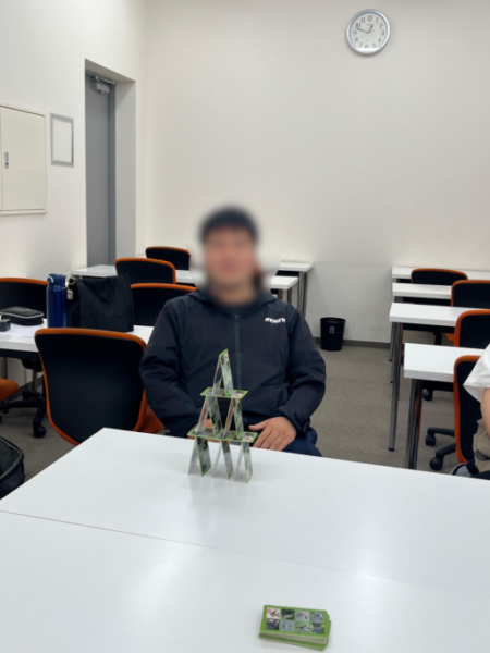 言い出しっぺなので、自分でこれを終わらせますと、真剣な眼差しでトランプタワーに取り組んでいました👀✨