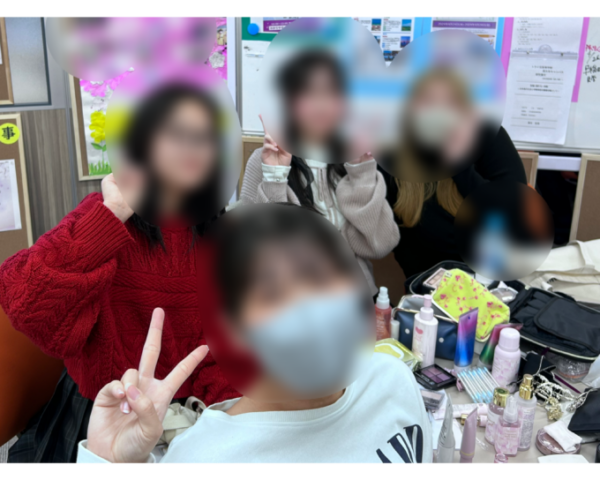 数名の生徒さんがメイクグッズを持ち寄り、集合!メイクのコツや、オススメのメイクグッズを共有していました😊みんなとても詳しく、楽しそうに話していました💖