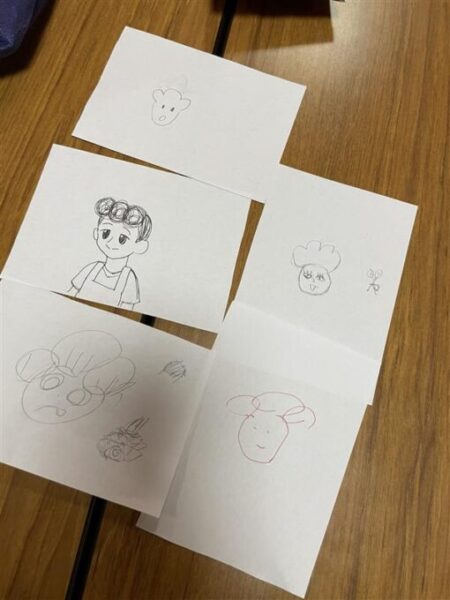 みんなである国民的アニメのキャラクターを描きました。みなさんわかりますか(笑)??