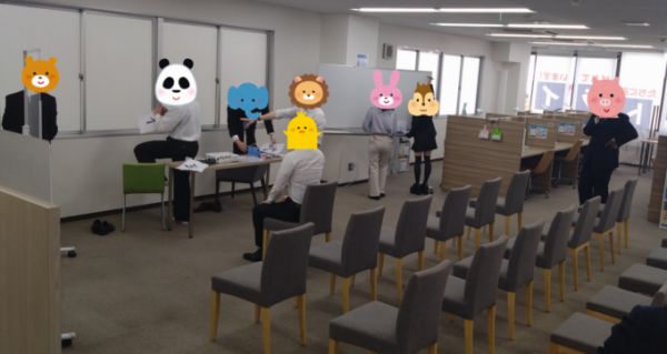 当日の朝にスタッフ・在校生が集合し、新入生を迎え入れるにあたって椅子を配置したり装飾したりと準備しました!