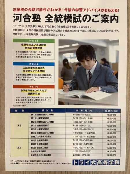 今回は、トライ式高等学院で受けられる河合塾 全統模試について、お知らせいたします📚