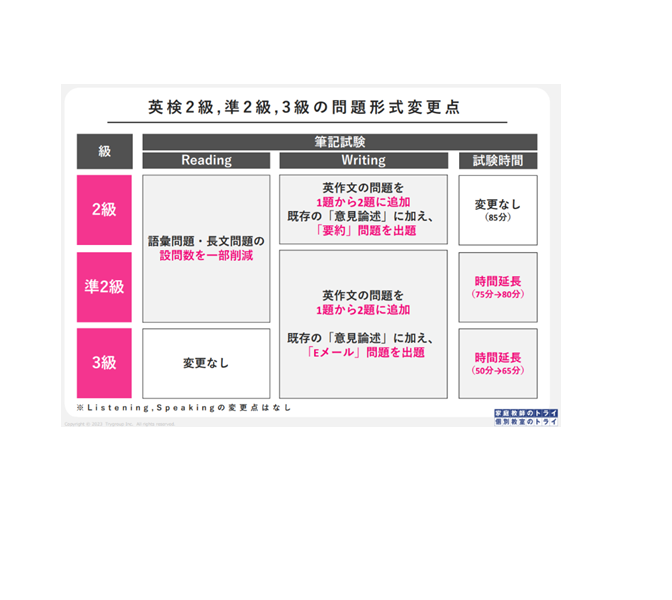 ②準2級プラスとは、英検2級と準2級の間に位置する新設級です。